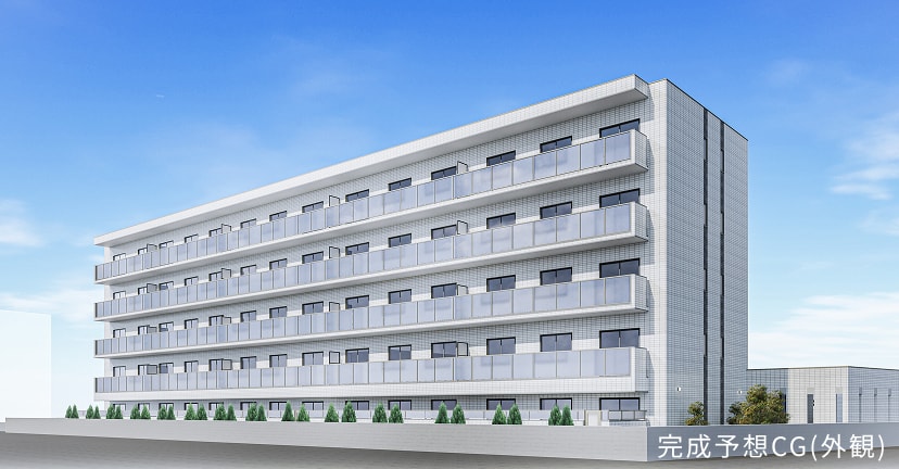 ※掲載の完成予想CG(外観・内観)は計画段階の図面を基に描き起こしたもので形状・色等は実際とは異なります。なお、外観形状の細部、設備機器等については、表現しておりません。形状、仕様、外構等については行政官庁の指導及び、設計・施工の都合により変更が生じる場合がありますので、予めご了承ください。